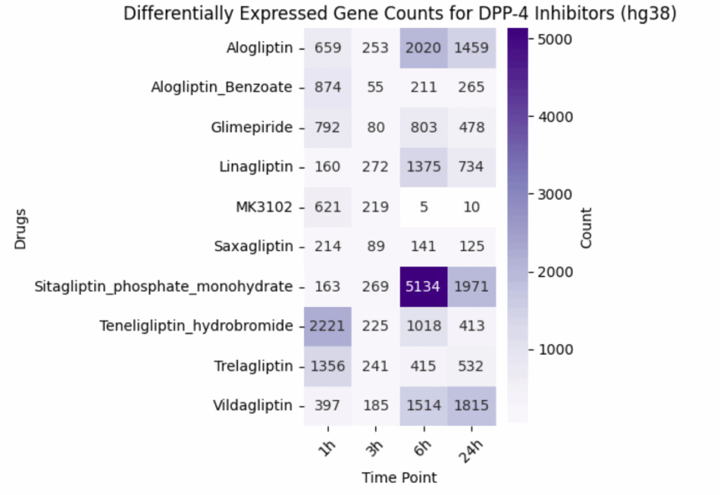 This dataset not only separates drugs targeting the same pathway by their diverse functional impact but also enables researchers to investigate potential off-target effects by examining specific genes and pathways perturbed beyond DPP-4 signaling.